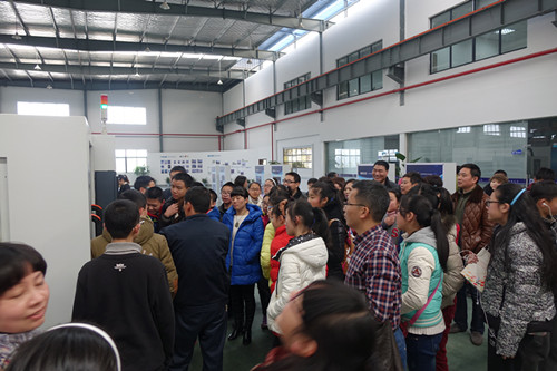 2015年2月(yuè)7日下午,衢(qú)州市實驗學校的學生在老師(shī)和家長的陪同下,來(lái)到了我司參觀。同學們對我司生產的數控機床產生了(le)極大的(de)興趣,他們興奮的一(yī)邊看、一邊聽著講解、一邊提出各種(zhǒng)問題。公司(sī)技術師傅汪洪江耐心地回答了每一位好奇的學生提出的問題。